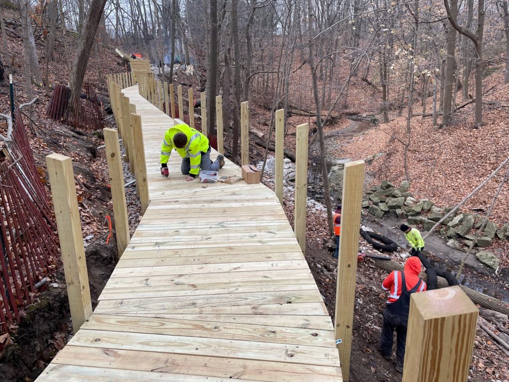 Staff provided construction updates for the Park Avenue Breakwater and Boat Ramp project, the Moraine Path Improvement project, the Centennial Ice Arena Renovation and Site Improvements project, the Millard Bluff Grading and Tree Removal project, the Fink Park Athletic Field Development project, and the Old Elm Trail Connection Feasibility Study.