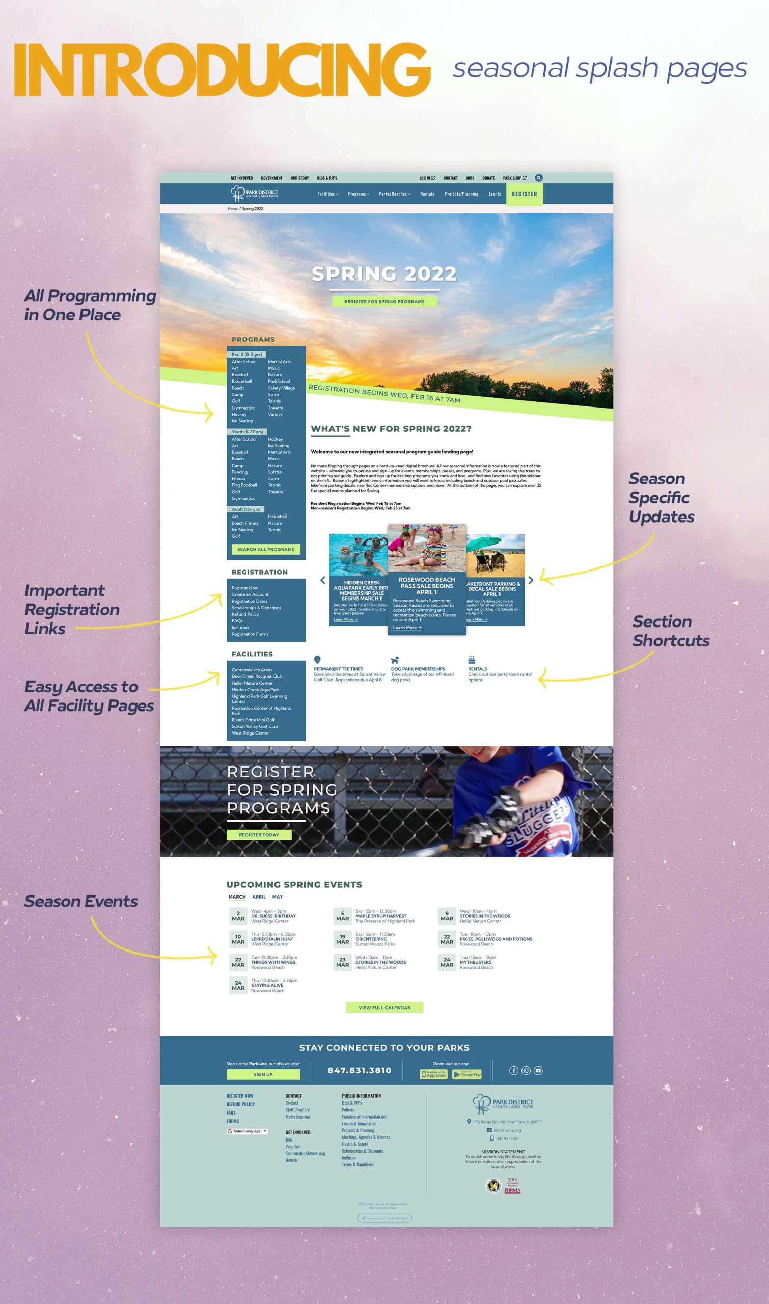 We’ve got a whole line-up of new online experiences for you! Now you have an easier way to learn about our Park District, find important information, and get your transactions done faster so you can move on with your day.
