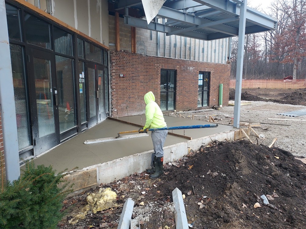 The concrete slab has been poured. The contractor will now conduct work on the mechanical system while the concrete cures.