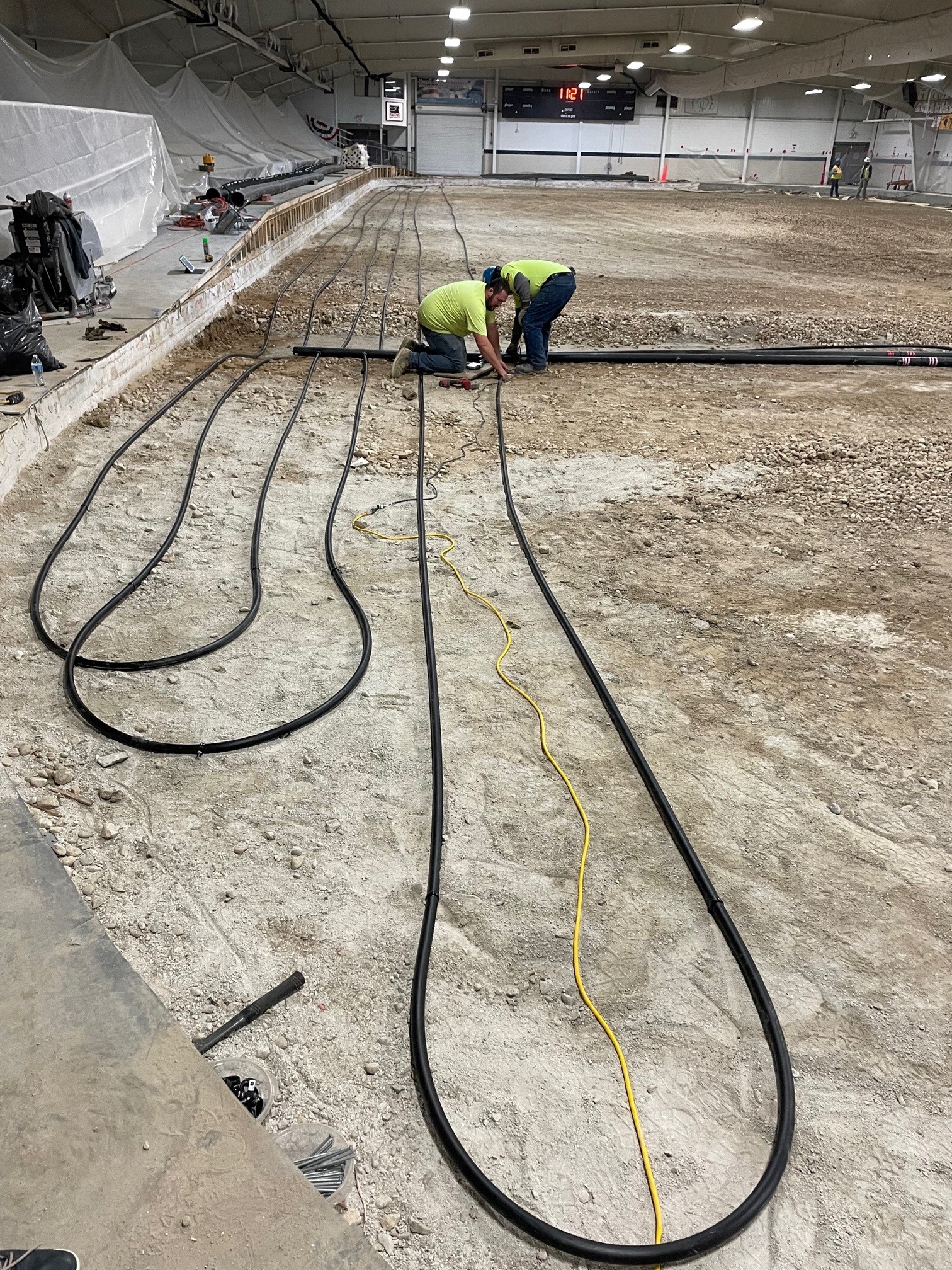 Construction of the rink floor is nearing completion. The cooling system has been installed and the concrete slab will be poured next week.