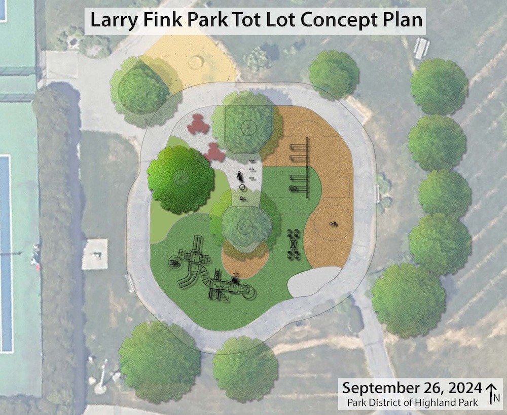 In preparation, the Park District of Highland Park began the planning process for Fink’s 2025 tot lot update over the Summer of 2024. The playground design process was collaborative. Community feedback collected throughout the design process guided the playground design.