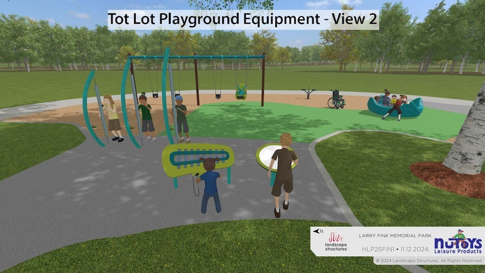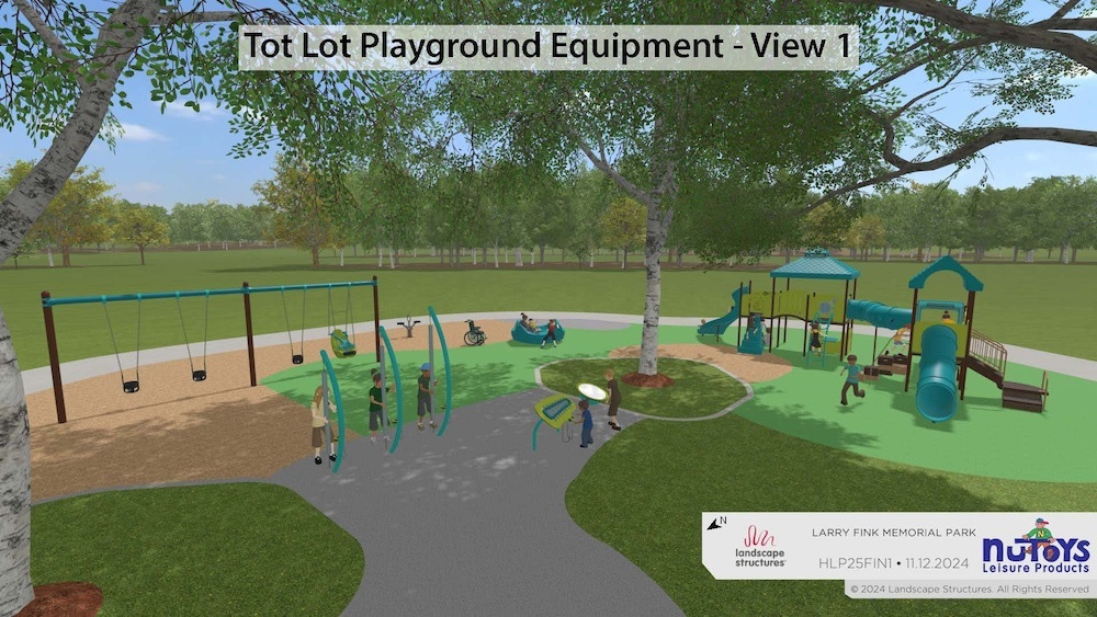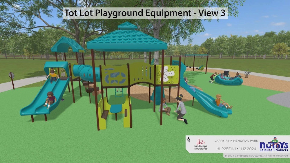 Larry Fink Park’s tot lot playground is scheduled for replacement in Spring 2025.