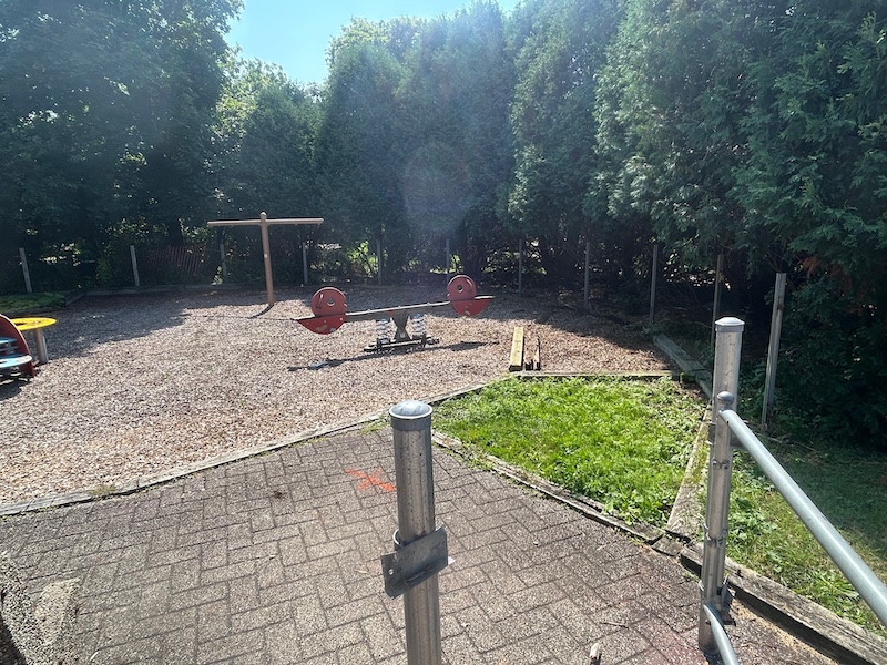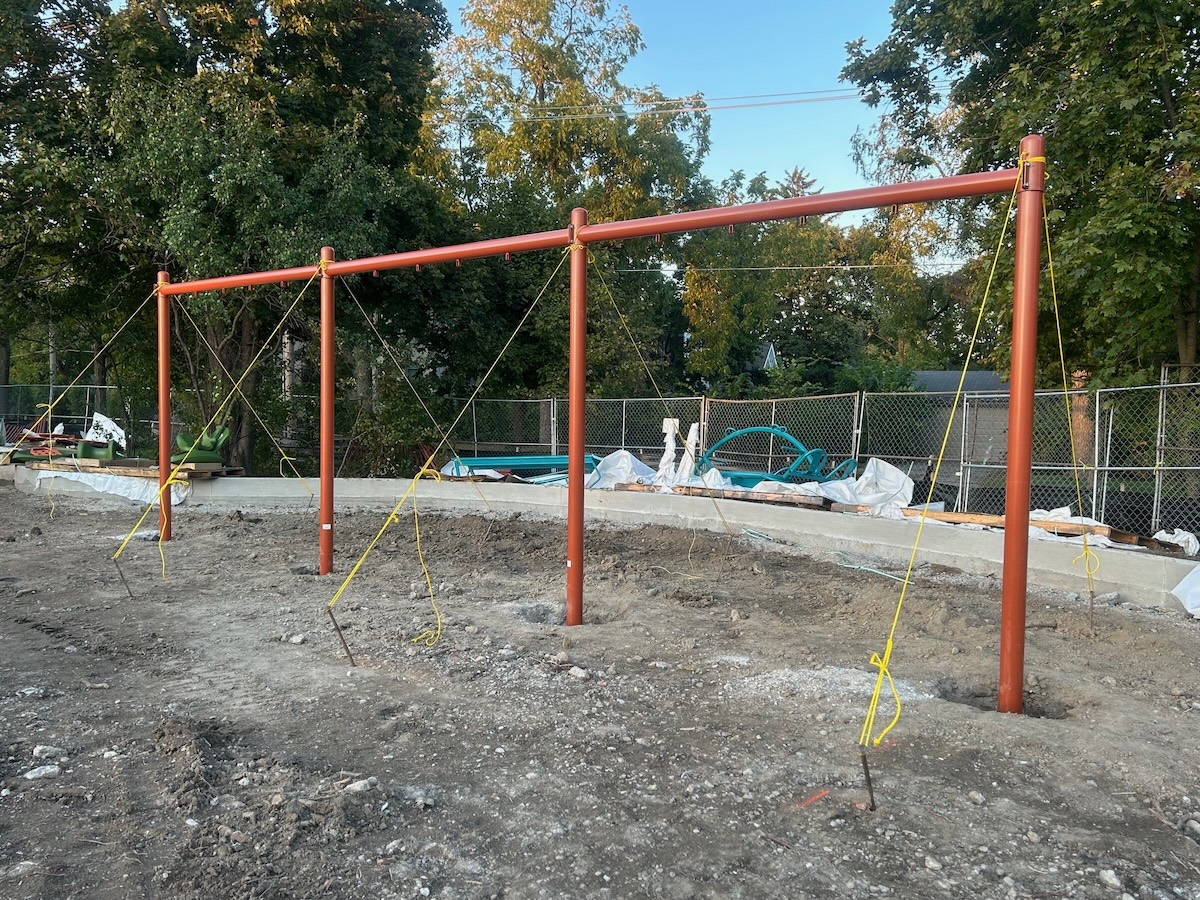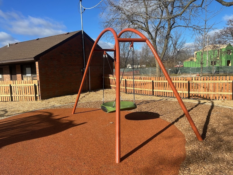 Additional playground equipment pieces were installed, including adding swings to the swing posts.