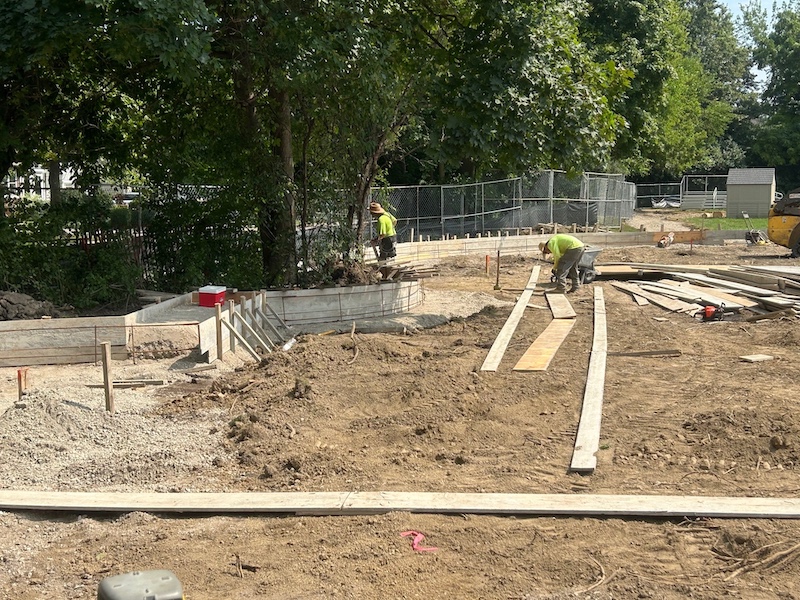 Last week, crews began framing the layout for both the tot and elementary play areas. Once complete, they will begin pouring the concrete curbs.