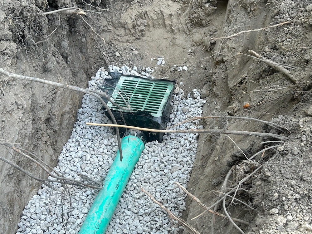 Grading work and site drainage installations are wrapping up. Crews will be on site today to spread topsoil and start seeding.