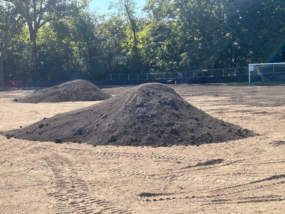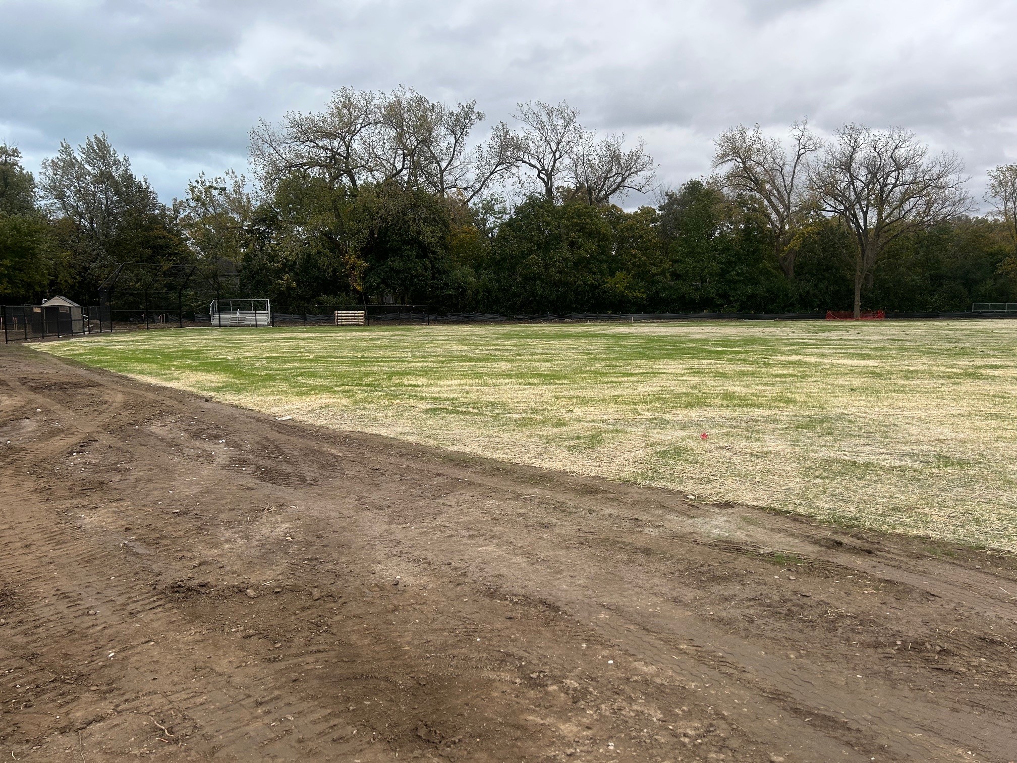 Field: This week, progress has also been made in the field, crews spread the infield mix for the ball fields and the grass continues to grow.