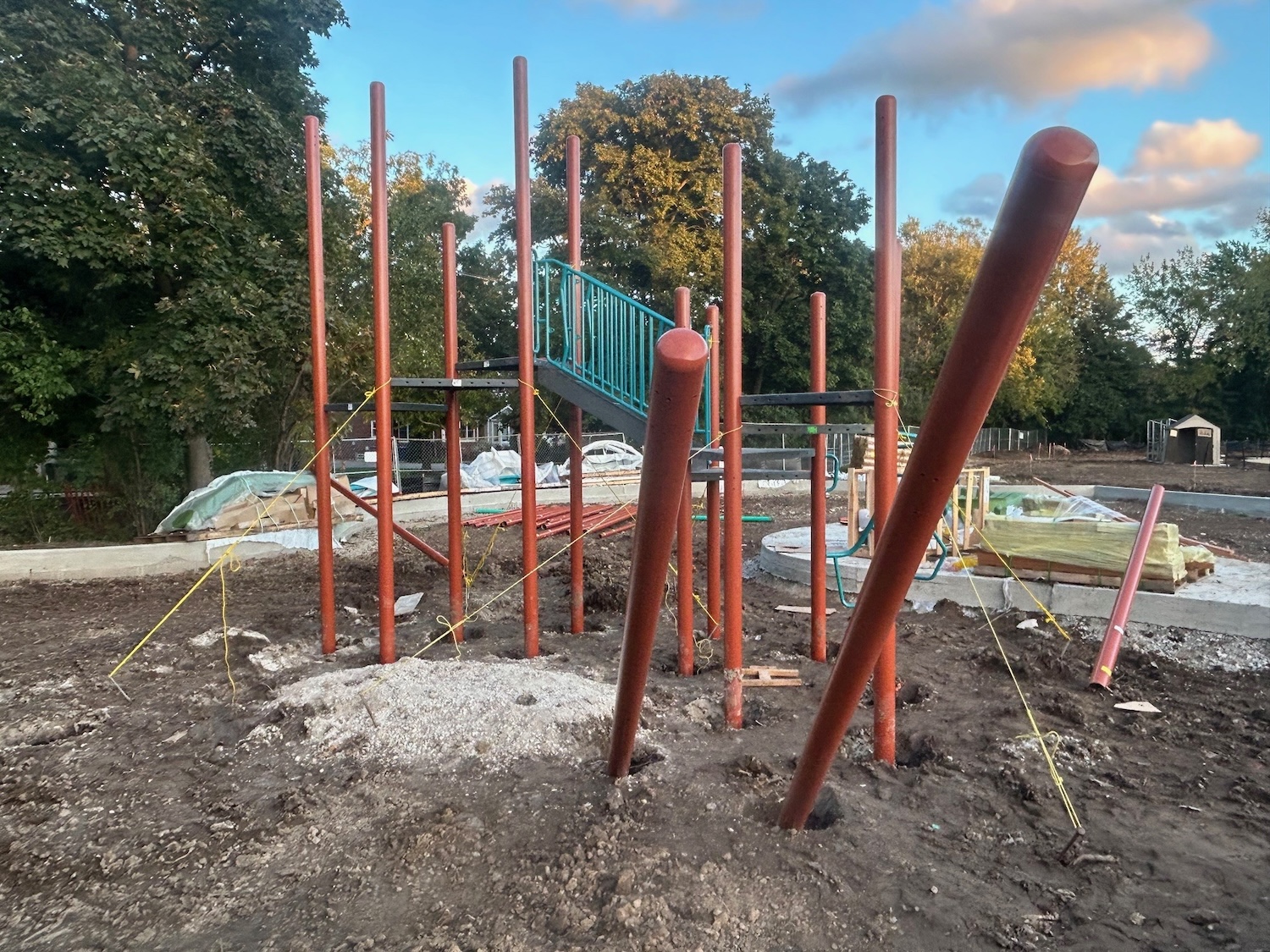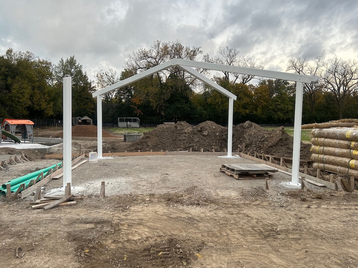 Up Next: Crews will be finishing the installation of the playground equipment, begin installation of the shelter, and work to wrap up concrete work at the dugouts and new shelter.