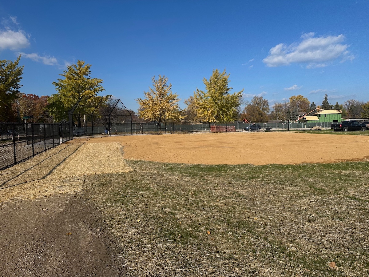 Demolition work is wrapping up this week and then crews will start laying out the playground and begin work on the ball diamonds.