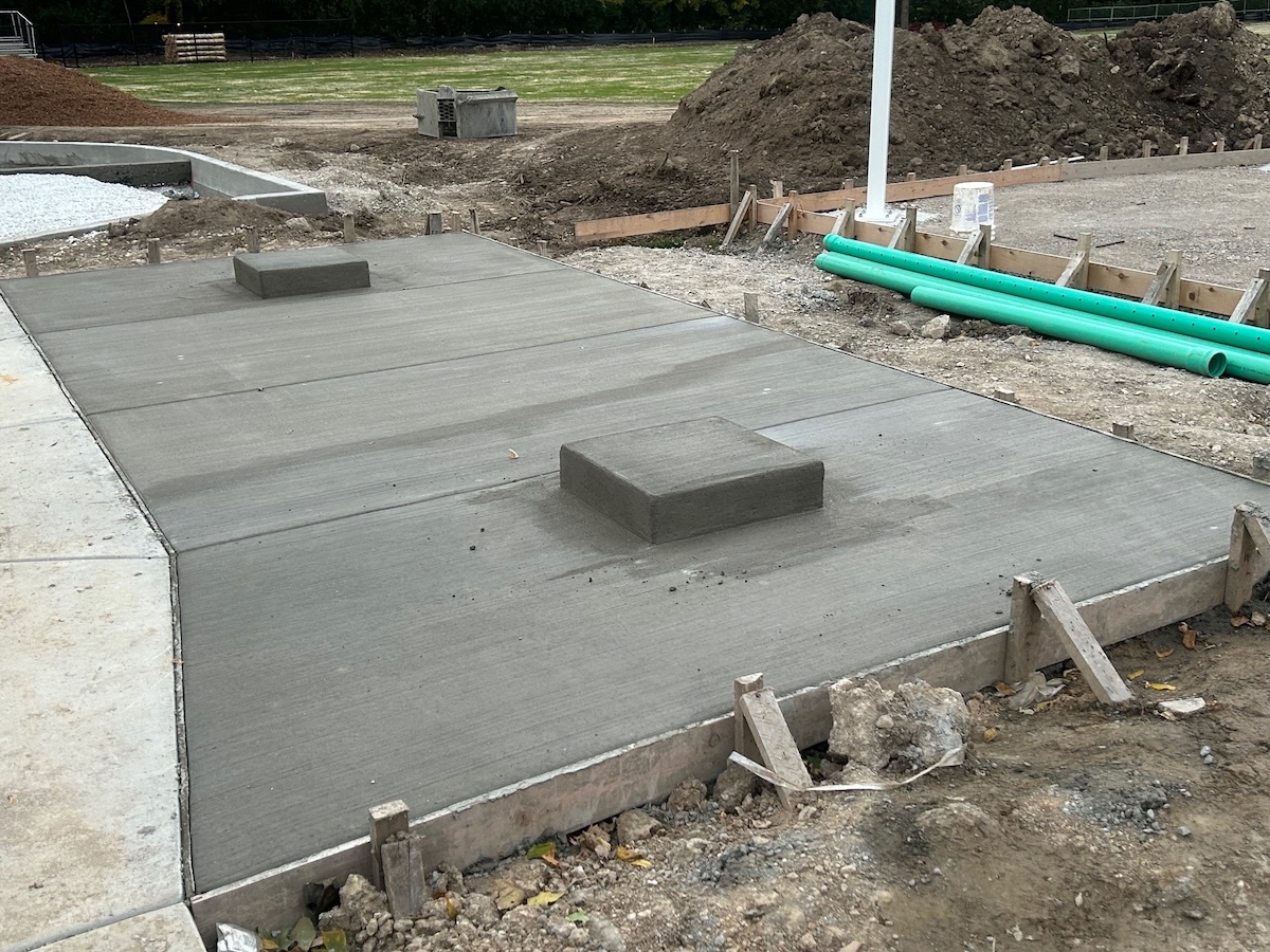 Up Next: Grading work will begin for the park paths, basketball court, and the parking lot. Crews will also be wrapping up any remaining concrete work, and will start installation of the playground surfacing.