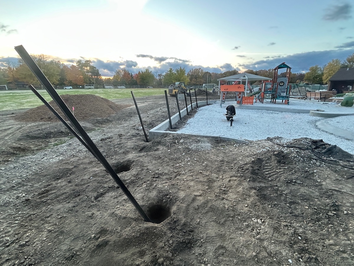 Up Next: The fence will be installed on the fence posts and playground installation work will continue.