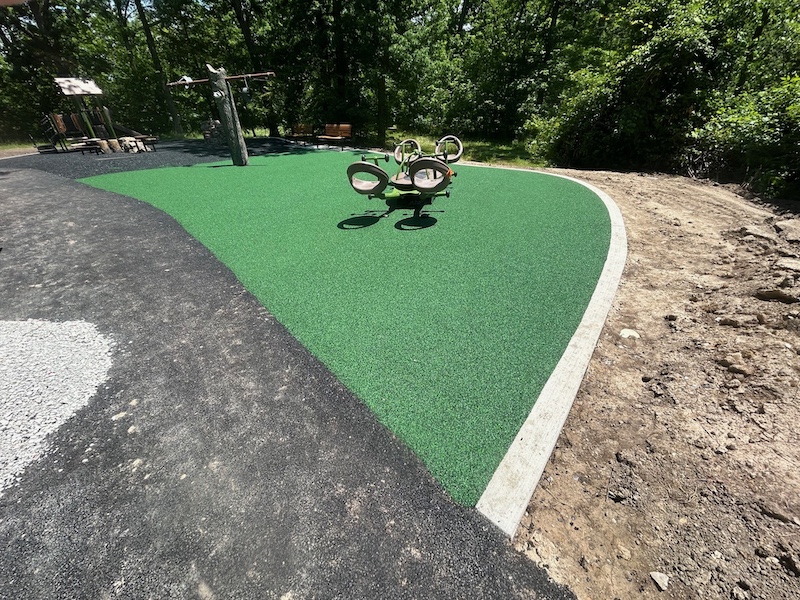 Crews are on site today to make adjustments to the poured-in-place surfacing.