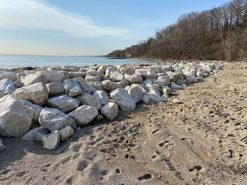 The Rosewood shoreline protection projects were approved by the Park District of Highland Park Board of Commissioners for Fall 2019 at the Nature and Swimming Coves and for Spring 2020 at the Recreation Cove. Both projects nourished the beaches with additional sand to protect them and our shoreline structures from the pattern of severe erosion at the beach caused by record high lake levels combined with an increase in severe storms causing damaging wave action.
