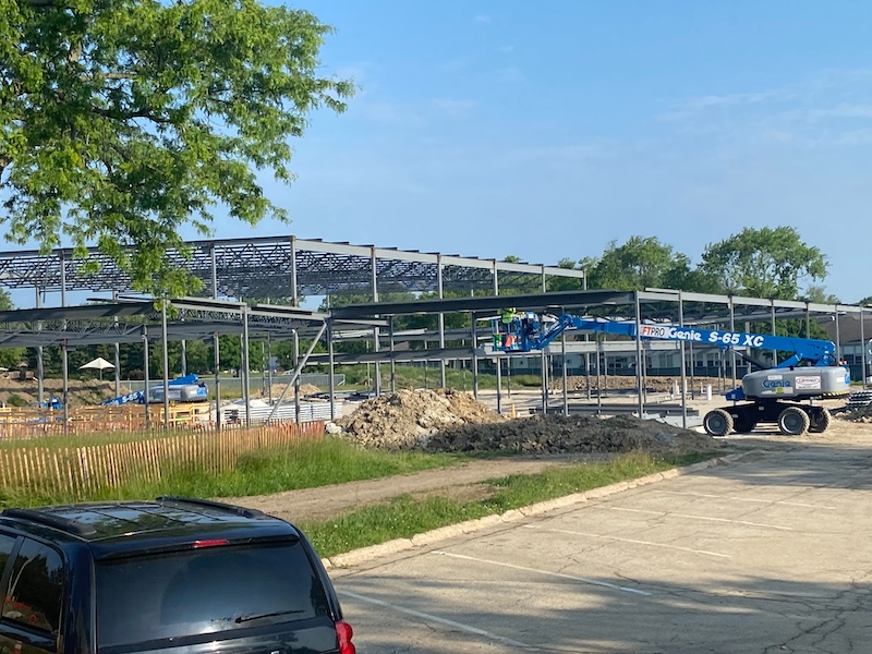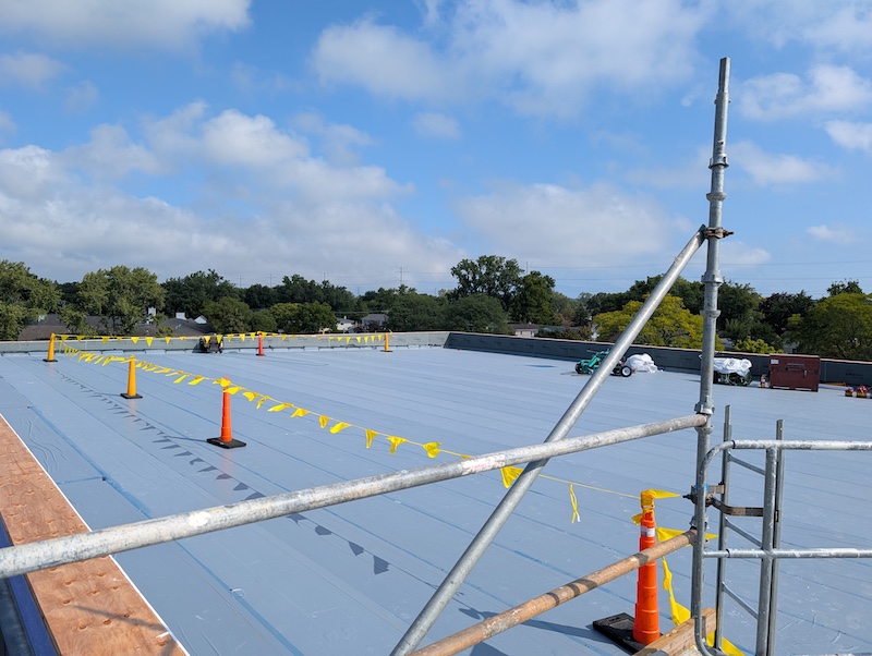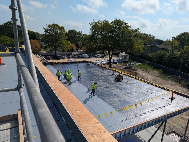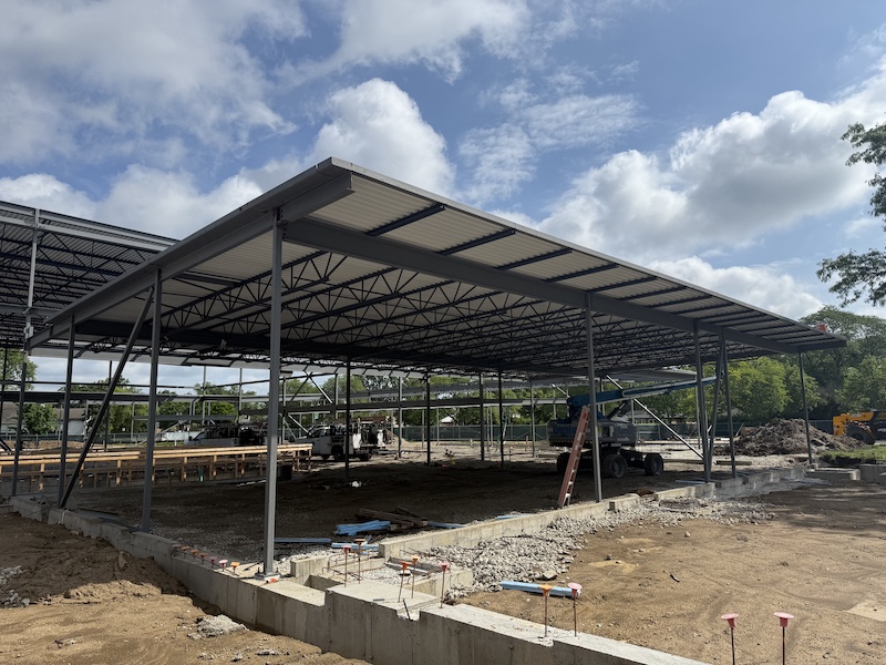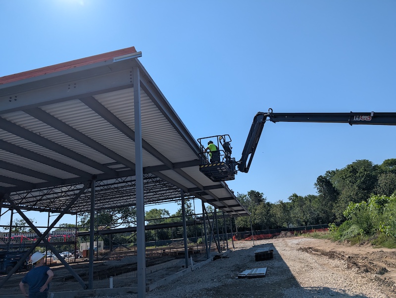 Last month, crews focused on underground utilities. This month, the action has moved to the roof!