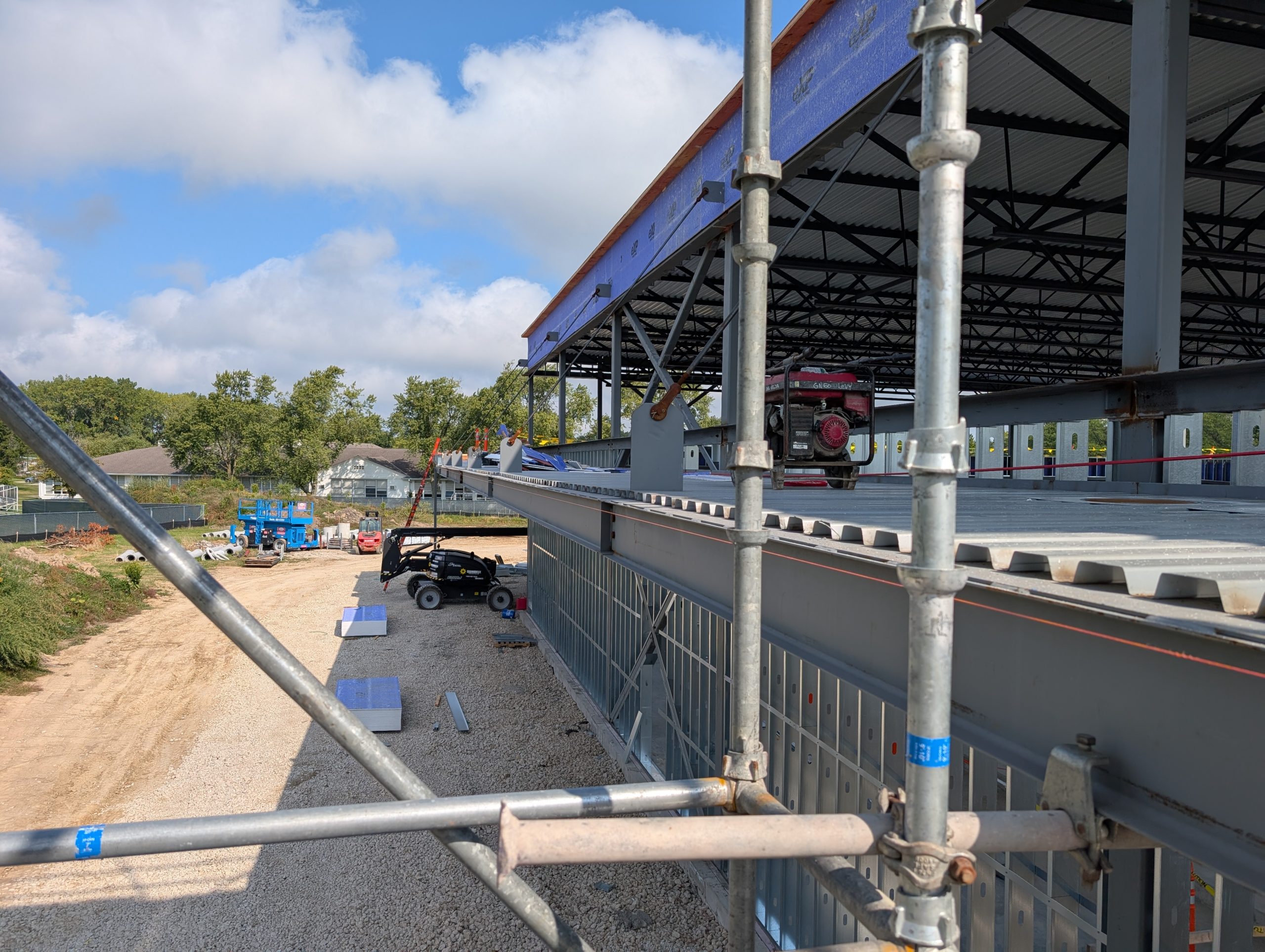 There is heat in the building and drywall in the gymnastics gym has started to go up. Much of the ongoing work will wrap up early December – including mechanical, electrical, and plumbing rough-ins, brick veneer, exterior wall assembly, and sprinkler pipes.