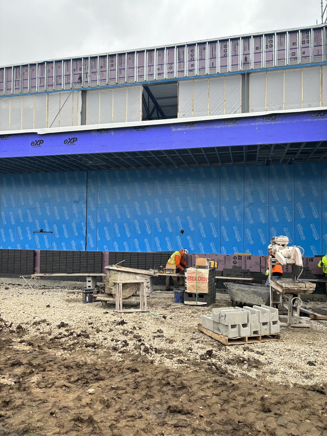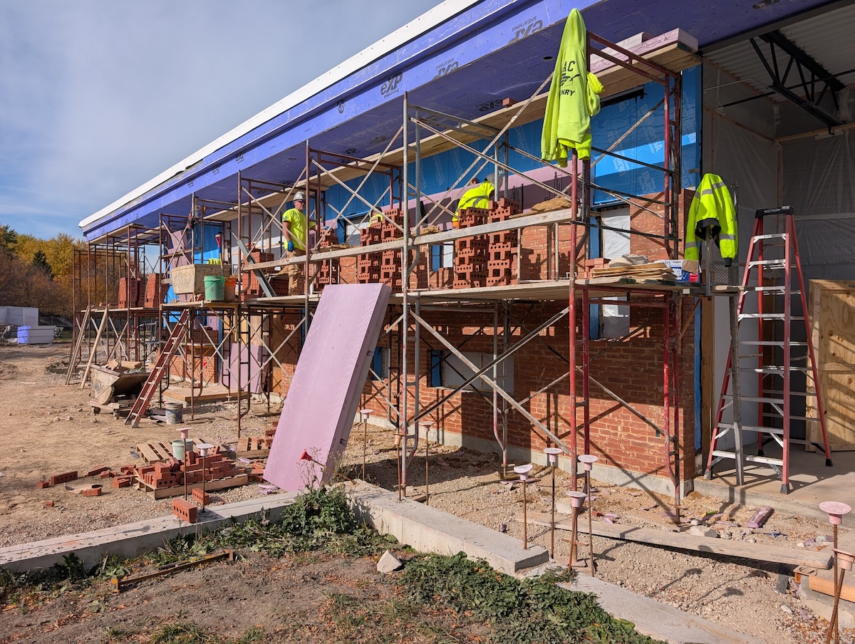 At the building, crews are wrapping up the mechanical, electrical, and plumbing rough-ins. Installation of insulation, brick, and composite siding is also moving along steadily.
