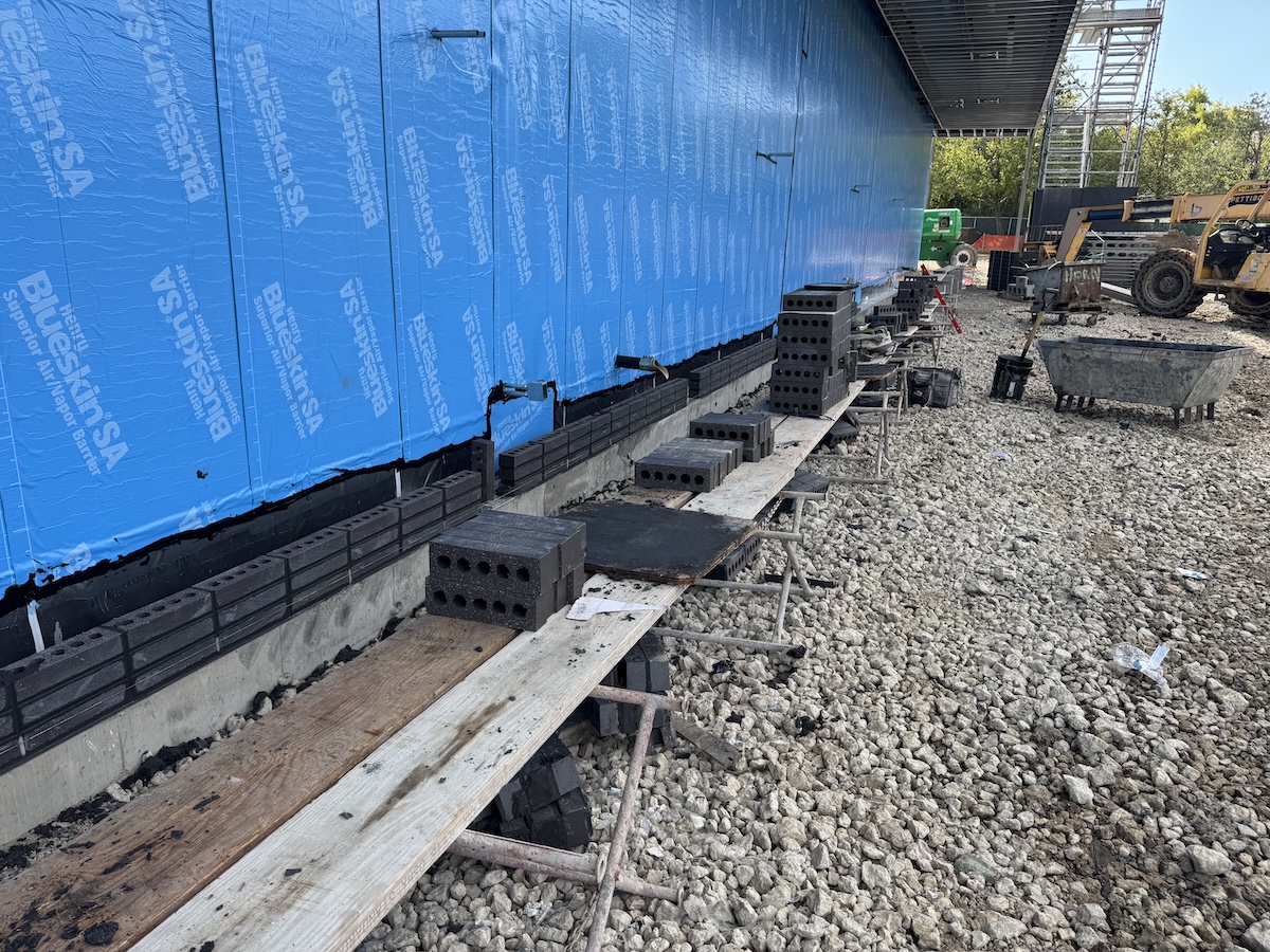 This week crews began laying the brick for the exterior façade and completed the trash enclosure wall.