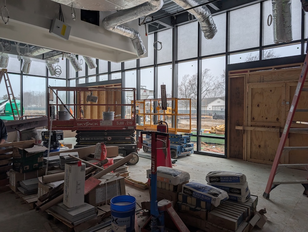 Outside the Building: You’ll see exciting progress as well. Translucent wall panels are now fully installed along Ridge Road.