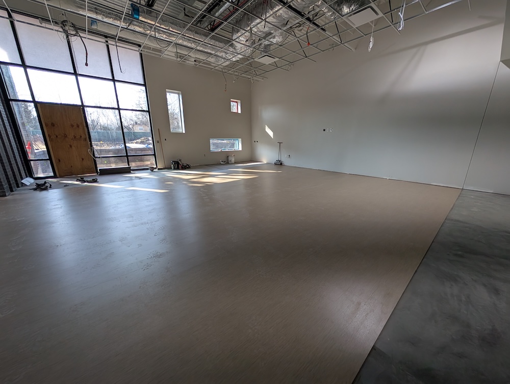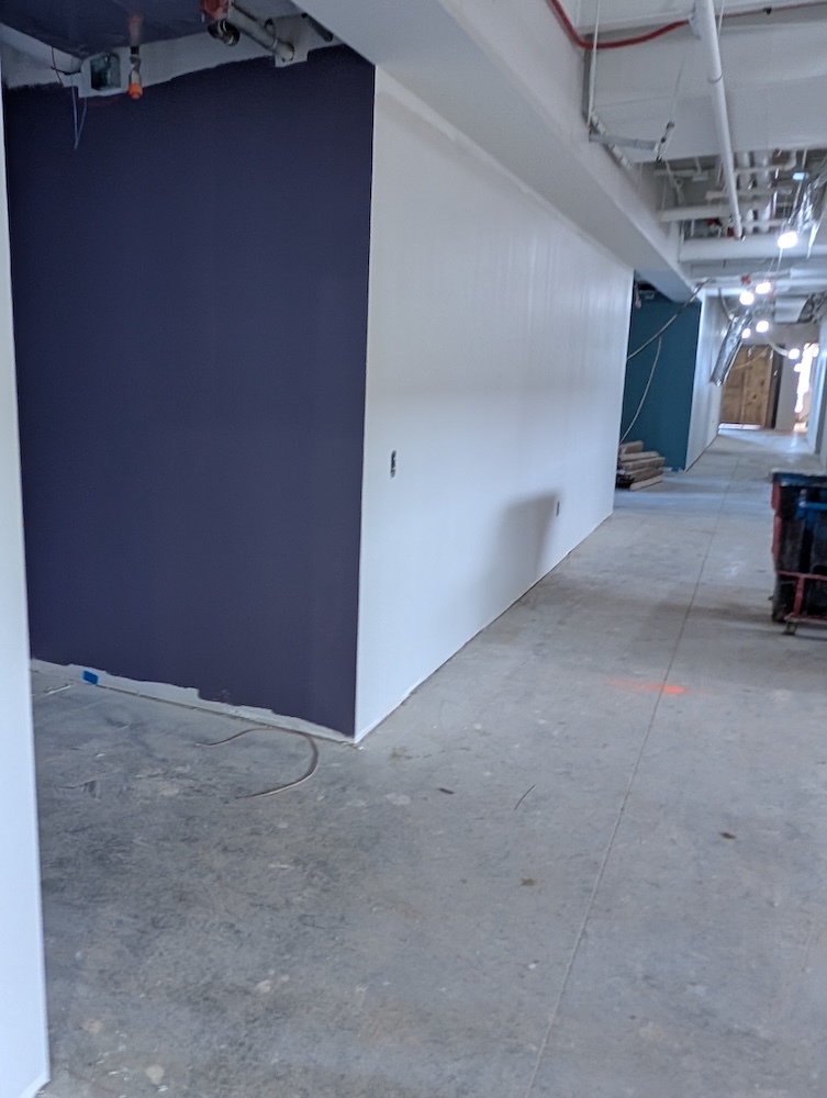 The building is also coming to life with color as the first coat of accent paint is being applied throughout.