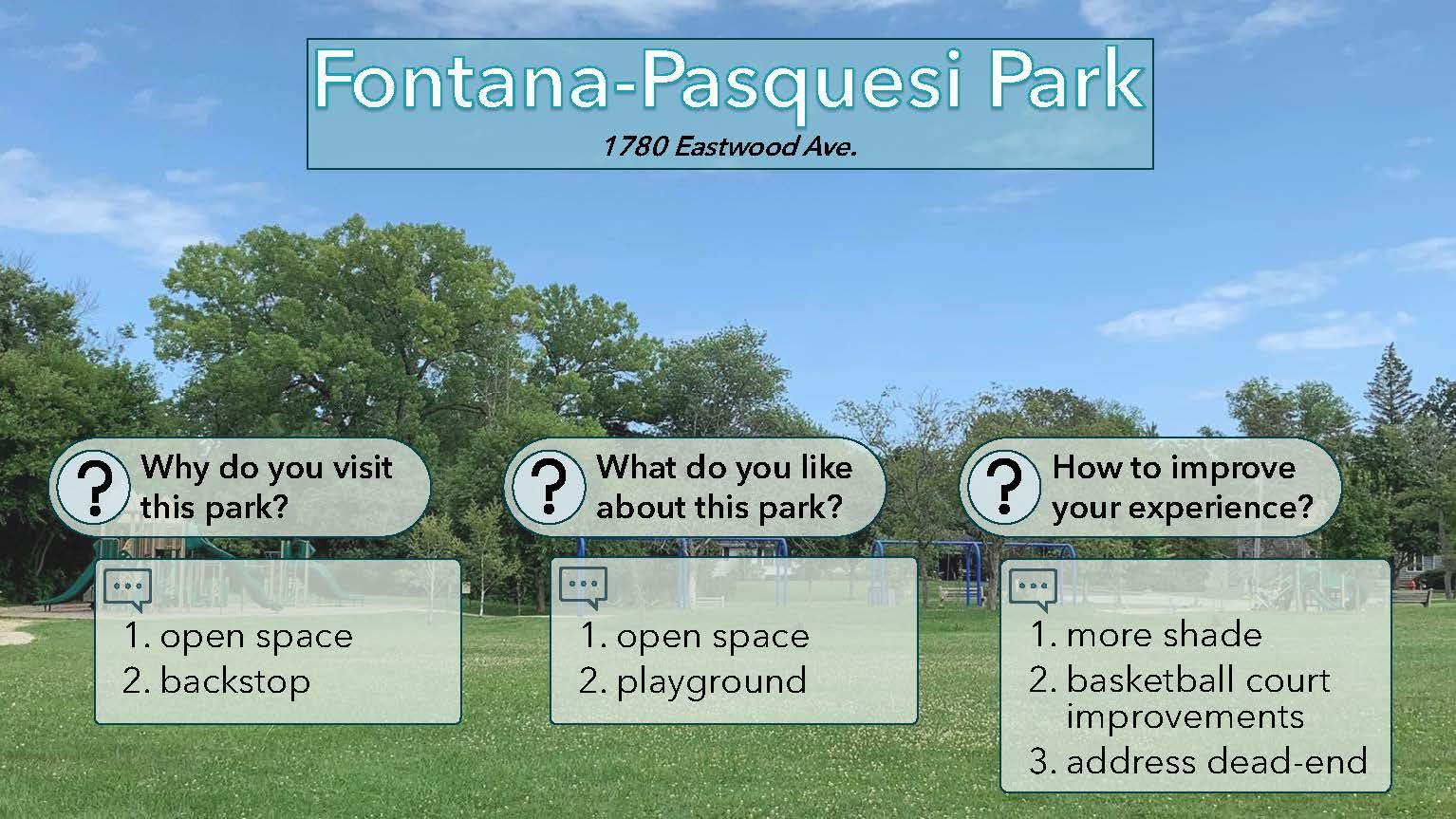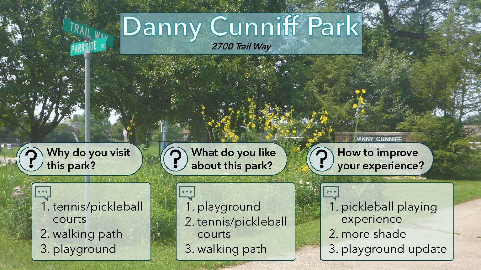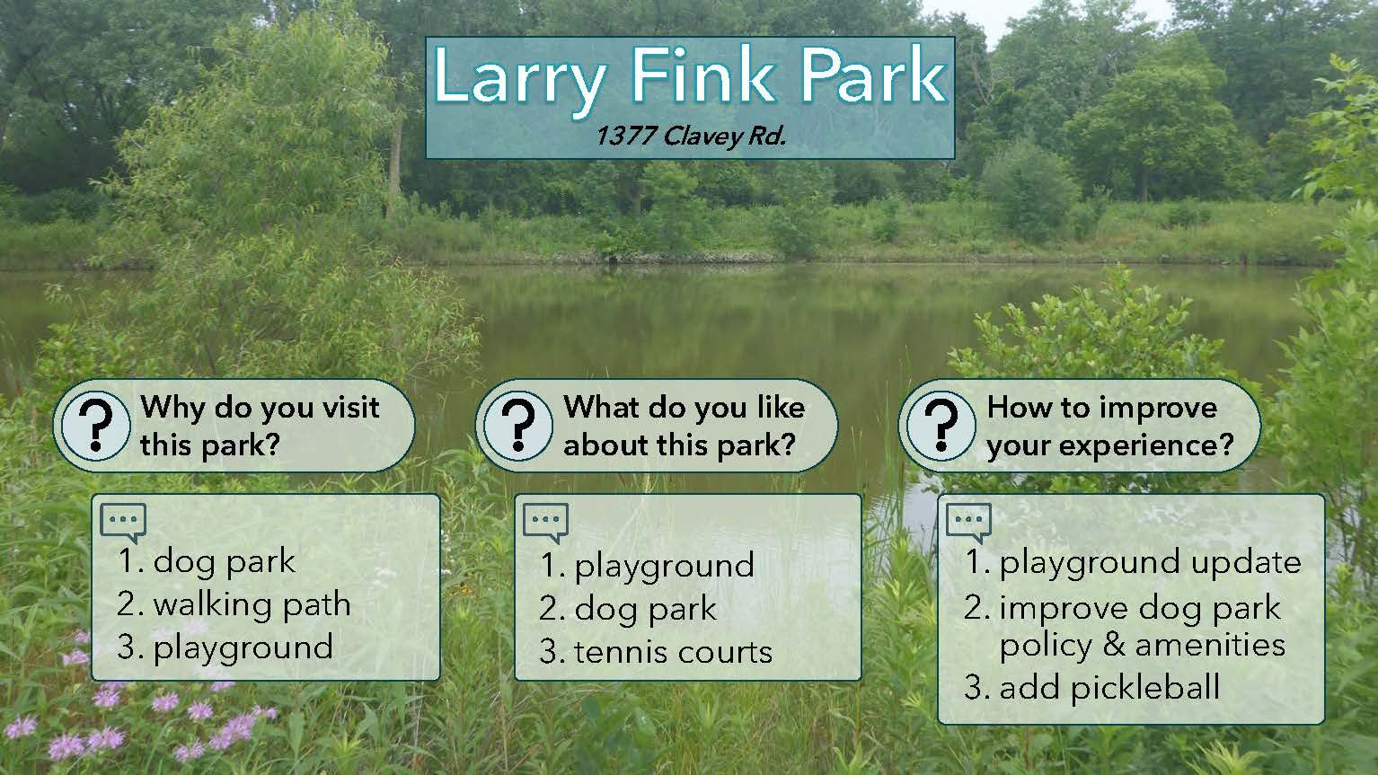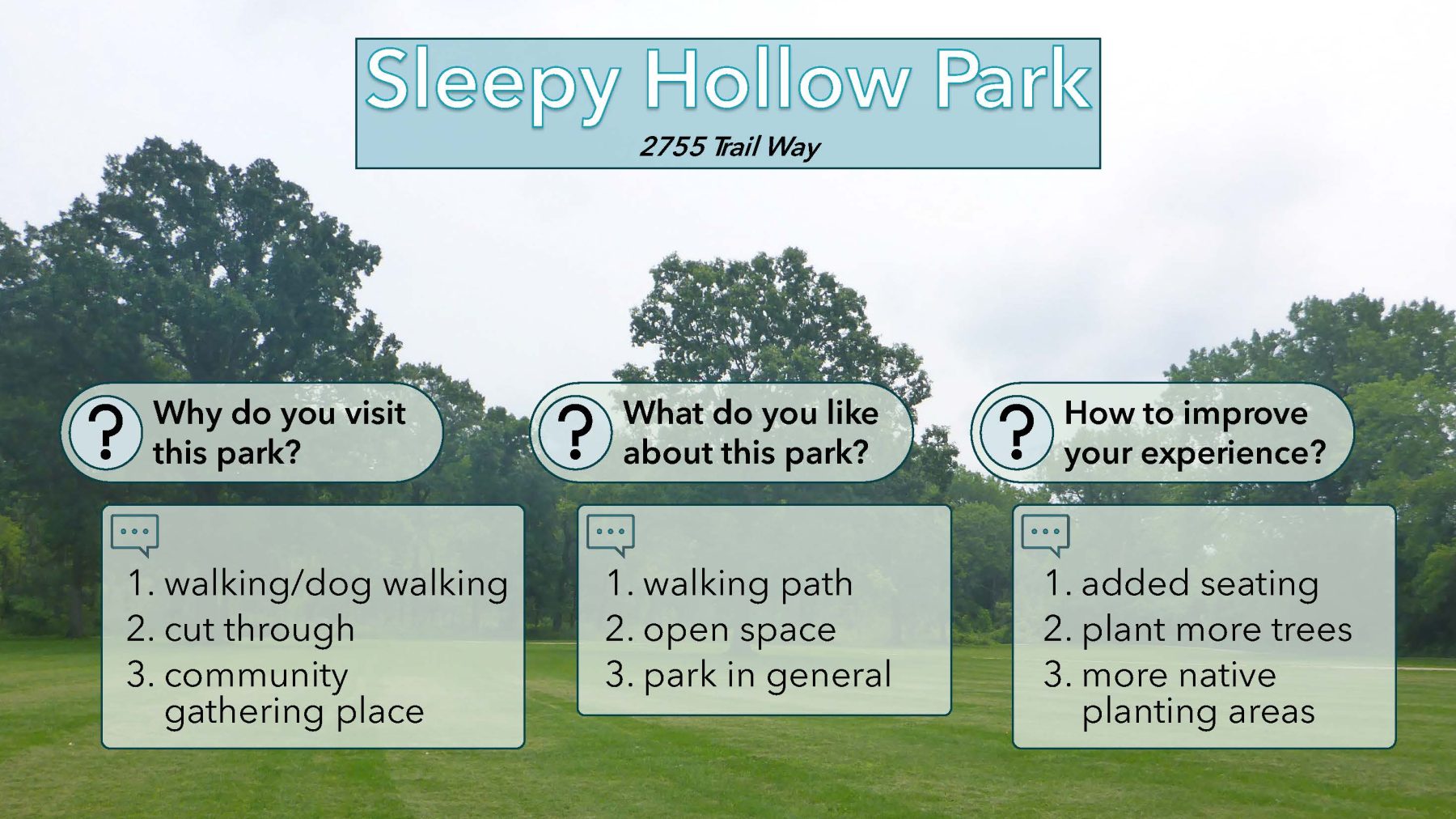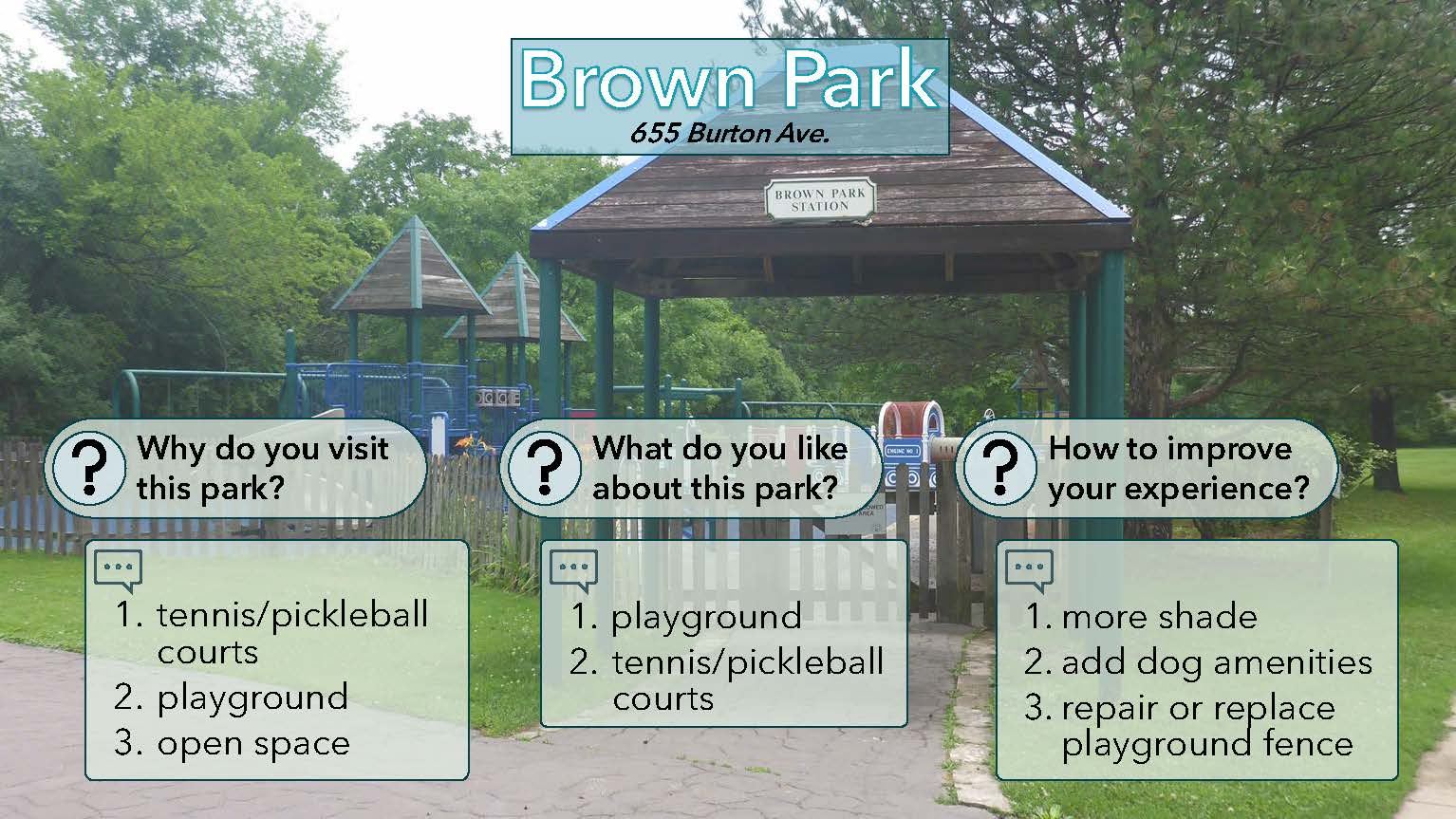 Feedback was collected to measure the Park District’s successes and opportunities to meet community needs through an online survey and conversations at the parks. The feedback will be used to guide the District’s operations and annual capital planning efforts.