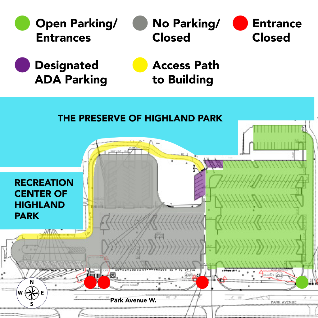The City of Highland Park begins Phase 2 of the Recreation Center parking lot project on Monday, October 7. This new construction phase will focus on the west lot, the building turn-around drive, and the west ADA parking area.