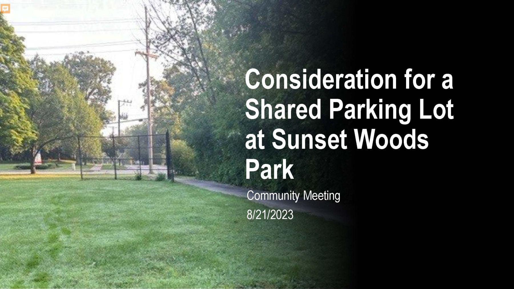 Consideration for a Shared Parking Lot at Sunset Woods Park