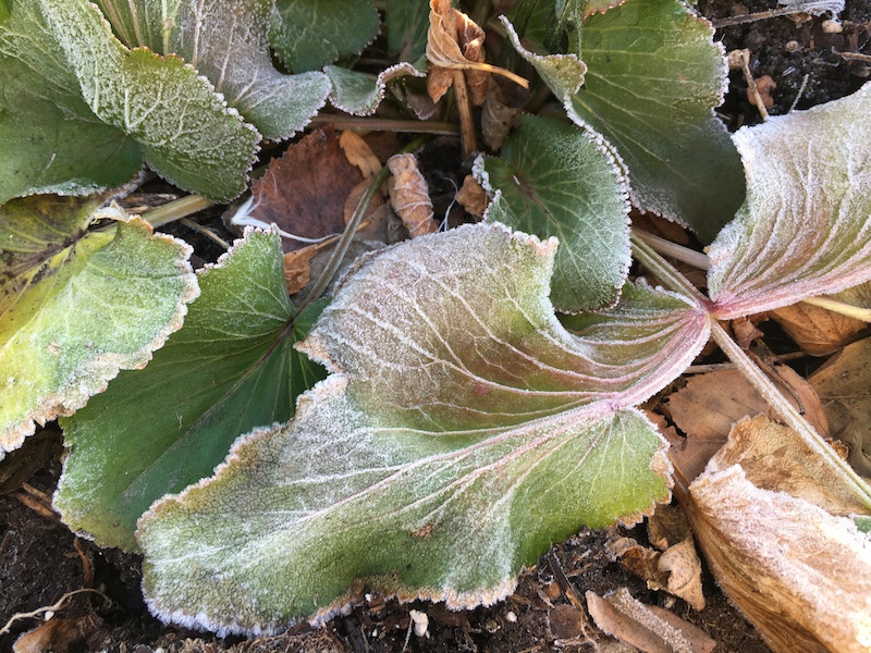 Of all the disciplines and practices that I like to claim—artist, designer, gardener—I think most of all I am an observer within the small parcels that I tend. On a late fall day, when the temps have settled in the lower portion of the thermometer and mornings bring a stunning display of frost lined leaves and stems, I think about all of the usual garden suspects and wonder where they are now. Gone are some birds, butterflies, and dragonflies who follow the Lake Michigan flight path south and mingle over-head come late fall. Those still in the garden though, in some form or stage, are the caterpillars of the endangered pearl crescent butterfly who overwinter under the basal leaves of some asters such as the big-leaved and sky-blue.
